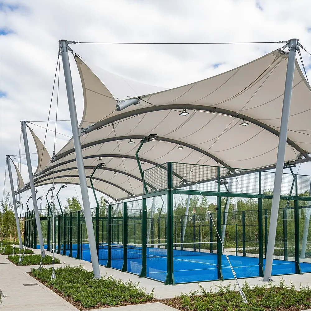 Tren olahraga baru membutuhkan infrastruktur yang juga modern. Padel, yang merupakan kombinasi tenis dan squash, sering dimainkan di area semi-outdoor. Penggunaan konstruksi atap membrane lapangan padel sangat disarankan untuk melindungi dinding kaca lapangan dari paparan panas langsung yang dapat memicu keretakan, sekaligus menjaga area bermain tetap kering.